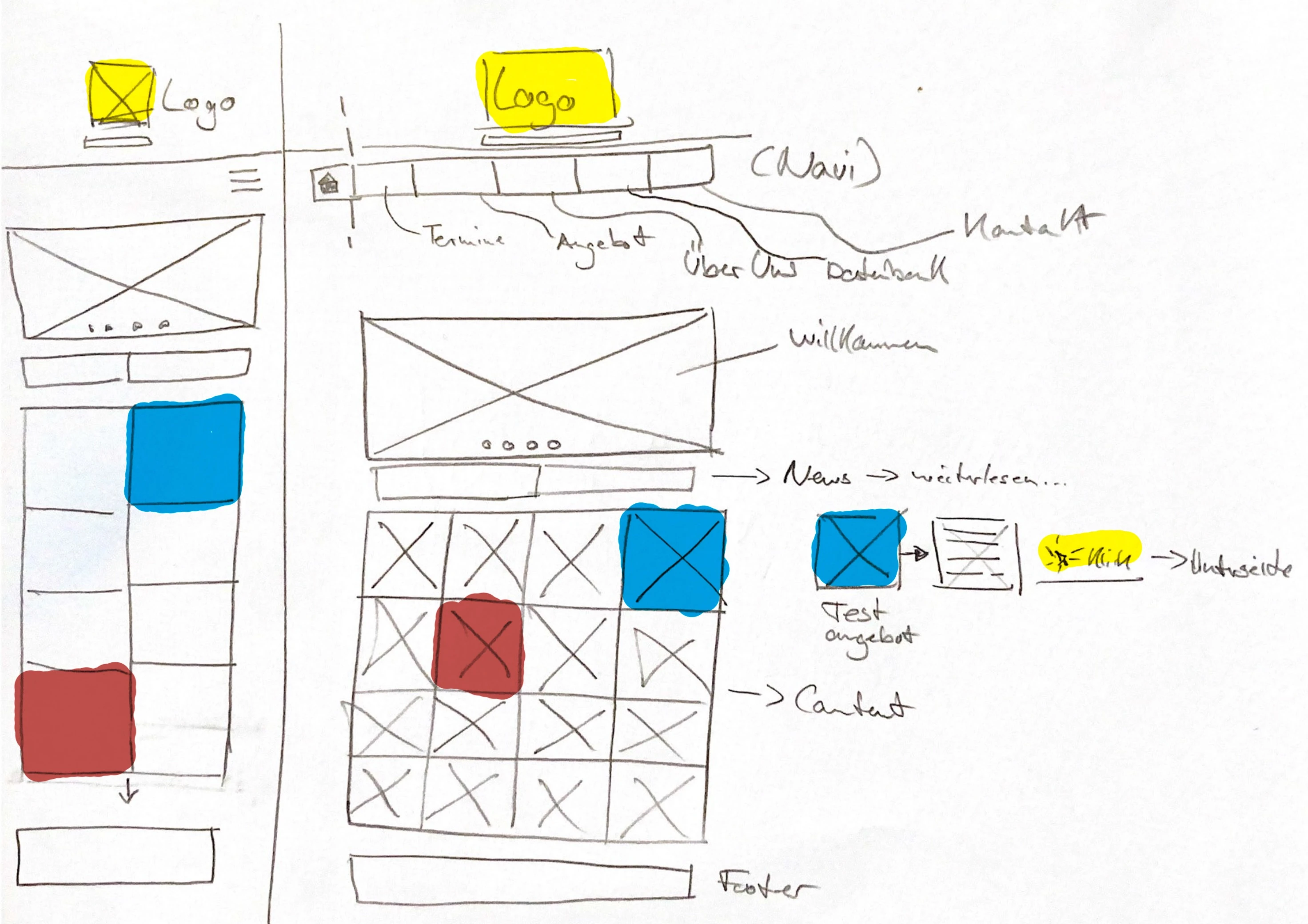 Aus der Skizze (siehe Foto) wurde nun eine dynamische Website, welche euch durch den Einsatz farbiger Kacheln durch verschiedene Bereiche lenkt. Die Website ist für alle gängigen Devices optimiert und soll euch schon auf dem Weg in der U-Bahn über das Angebot des Mann-O-Meters informieren – vom nächsten Testtermin bis hin zu einer Beratung, mit nur wenigen Klicks.
